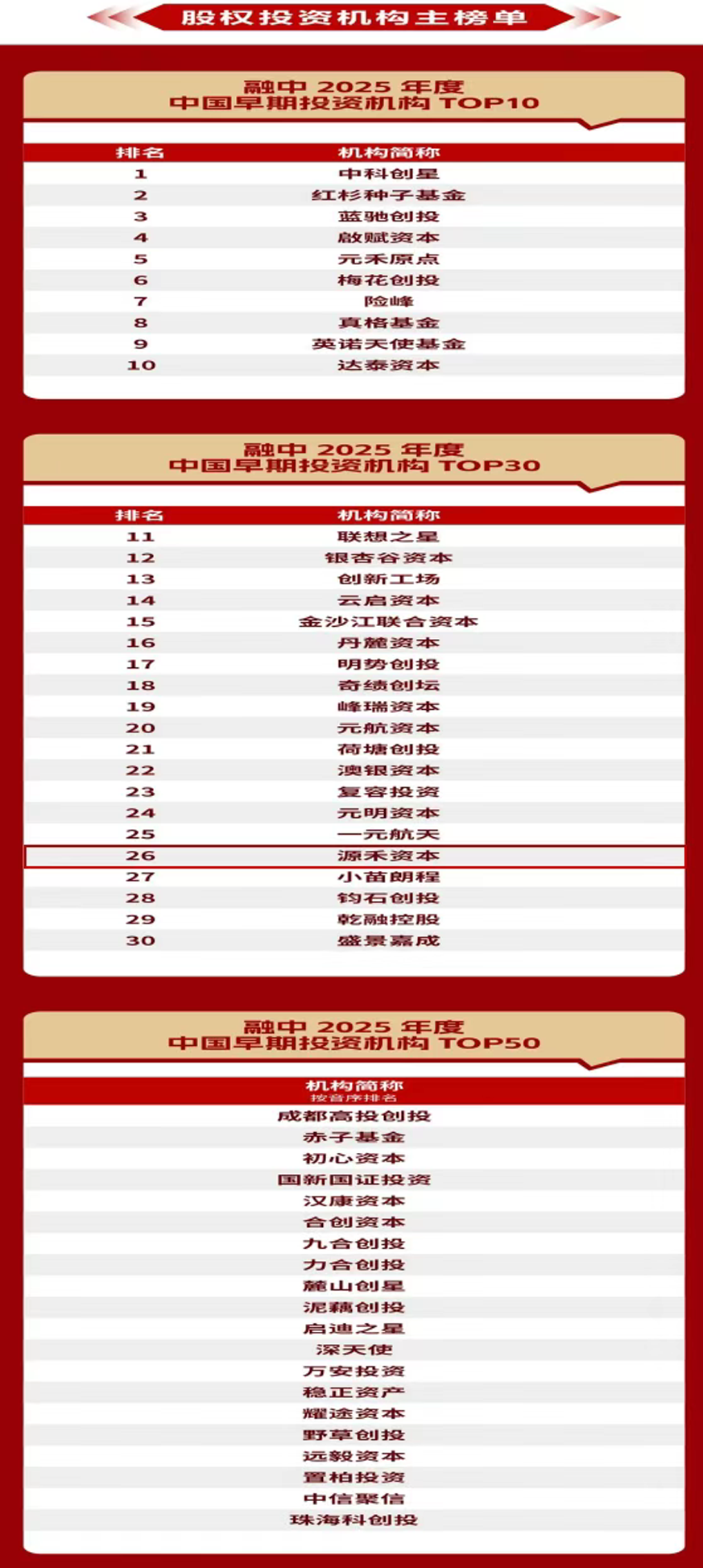 源禾资本此次荣登早期投资机构主榜,是市场对其长期聚焦早期投资、深耕专业领域并成功构建“募、投、管、退”全周期管理能力的充分肯定。每一份荣誉的背后,都是对无数个日夜行业研究的坚守,是对众多潜力企业的悉心甄别与赋能支持。